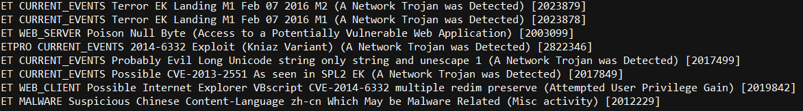 This was a great find, Terror EK in the wild from malvertising. The landing page appeared to be in the compromised site itself and was not loaded from an iframe, etc. The site just displayed jibberish (Lorem Ipsum). The EK used three Flash files, attempted a Silverlight exploit and triggered several interesting ET signatures. There was also almost no obfuscation of the code as well.