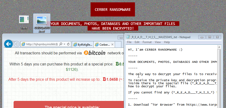 I only noticed one change in this Cerber and that was the ransom note said (and no typo) “Hi, I’am CERBER RANSOMWARE :)” which I’m fairly sure I have not seen before.