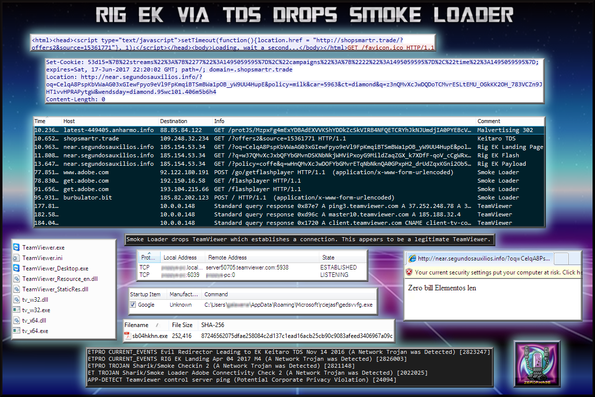 This flow began with “RoughTed”. This is a malvertising operation reported on by MalwareBytes recently. Other than the initial starting point, everything else seemed fairly normal.