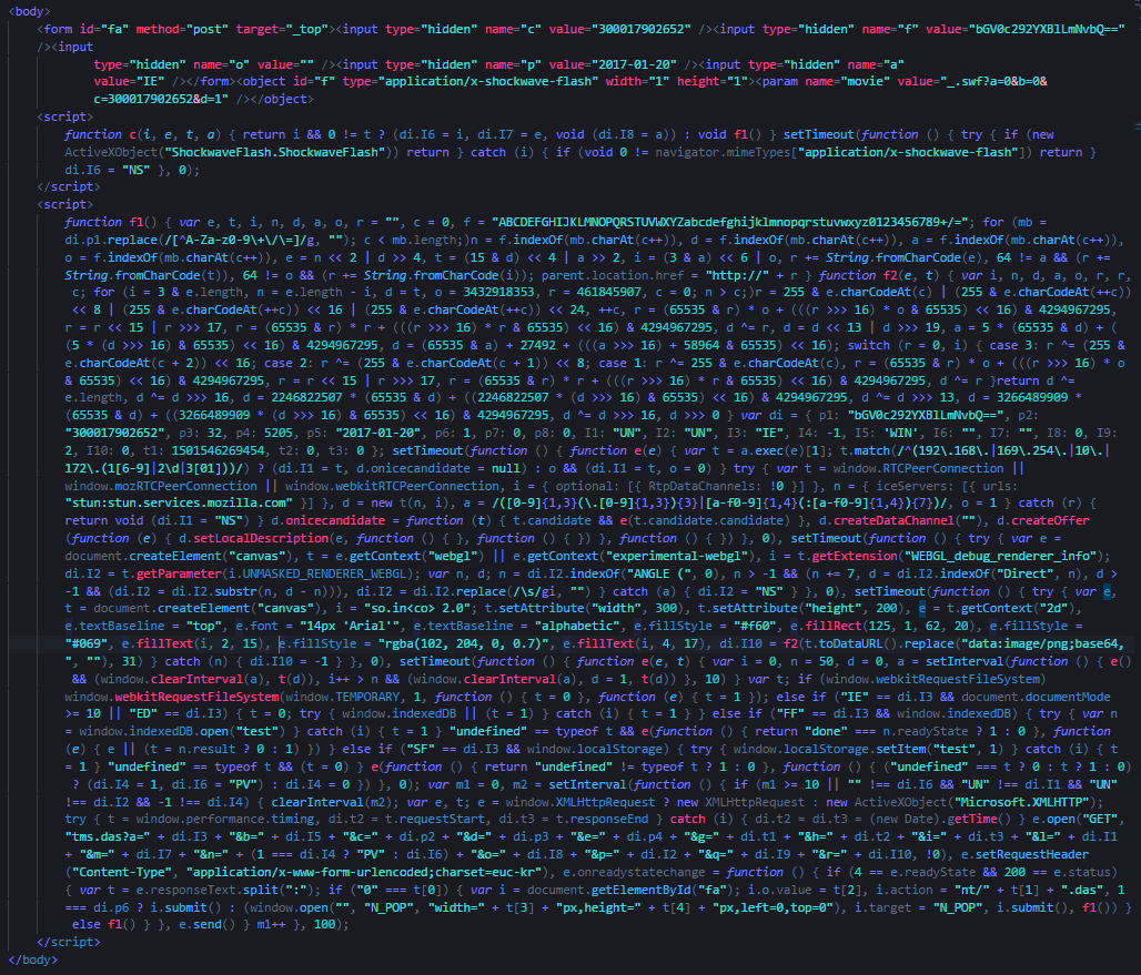 Next comes the VBscript landing page which appears to be similar but again I will look into it. Here is a snapshot of part of it: