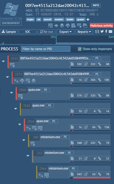 The payload was AZORult which loaded Quasar RAT. Rig EK still seems to prop itself up and with the latest revelation of another zero day in IE (CVE-2018-8373) I expect this to be integrated into EK’s in the very near future.
